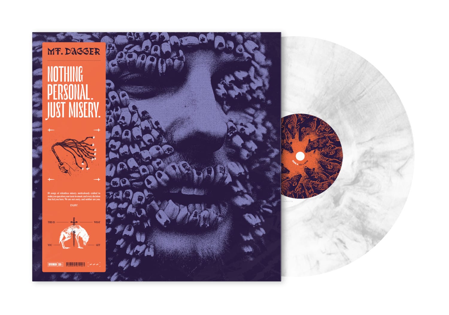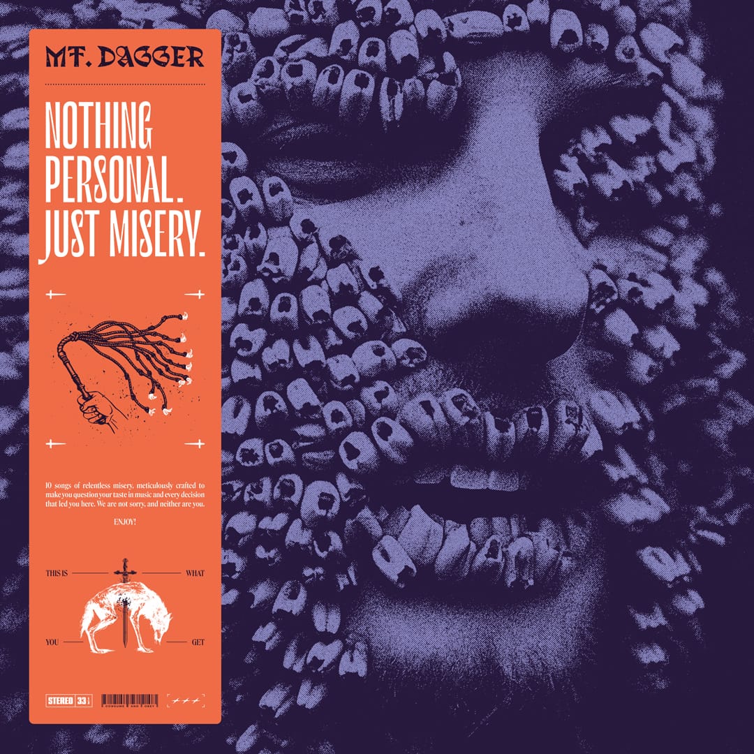 Berlin and Leipzig-based four-piece Mt. Dagger present their full-length debut “Nothing Personal. Just Misery.” following their self-recorded demo from 2022. Capturing the band’s raw energy, the album was recorded live at Tonmeisterei Oldenburg at the end of 2024 and features 10 tightly- arranged songs packed with the driving sounds of hardcore D-beat rhythms, dense and dynamic guitars, distorted, punchy bass, and high-pitched, ratty vocals. The lyrics confront boundary violations, self-destruction, skewed work ethics, and false idols born from human absurdity with each track revealing layers of despair and dark irony – without resignation. The album’s artwork, crafted by the guitarist, mirrors its unfiltered intensity: Mt. Dagger unleash 10 songs of relentless misery – and make no apologies for it.